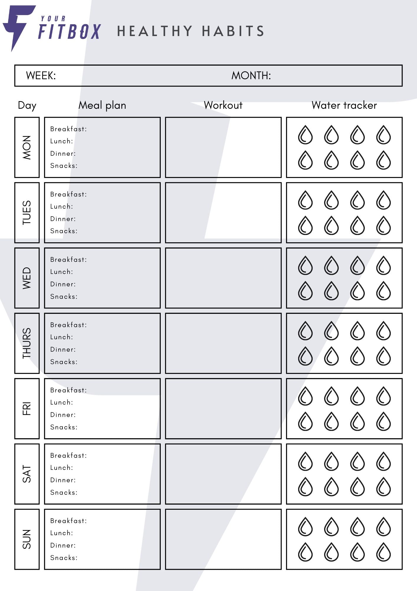 Stay organised, motivated, and on track with the Your Fitbox collection of downloadable trackers and wellness tools. From habit trackers and workout planners to hydration logs and goal-setting sheets, each resource is designed to support your health habits, fitness goals, and overall well-being.